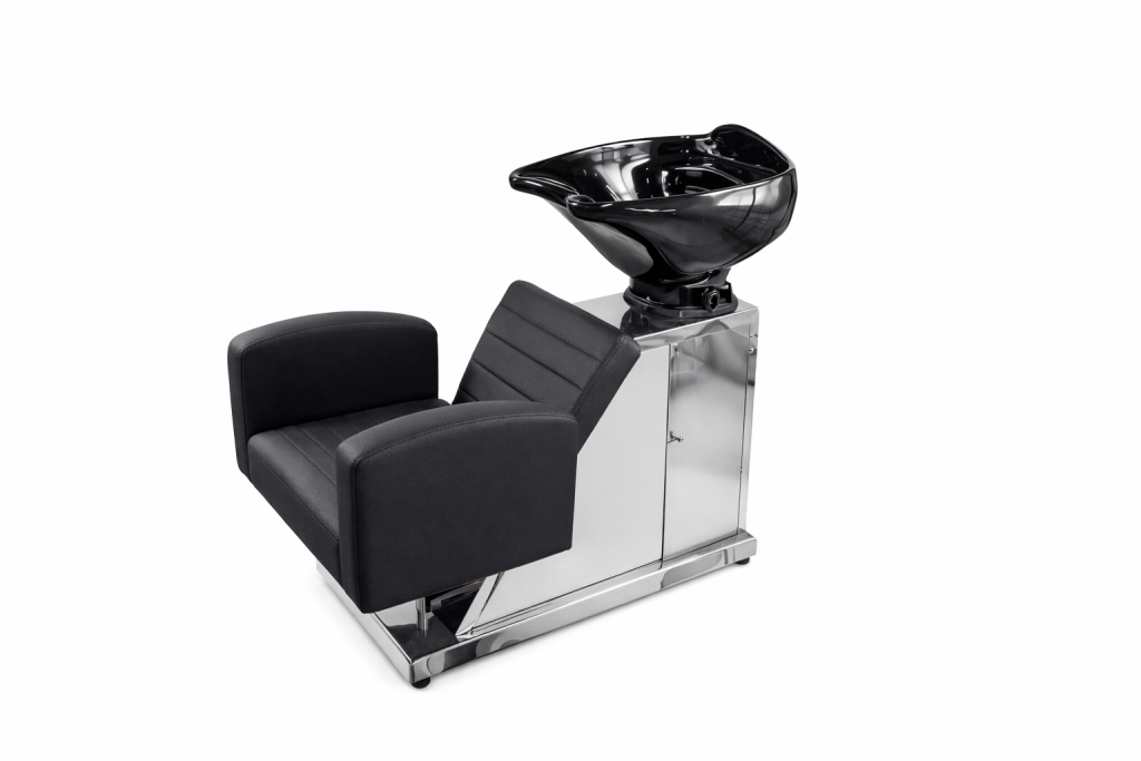 Lava cabezas en Acero tapizado en Cuerotex, Poceta en Porcelana.